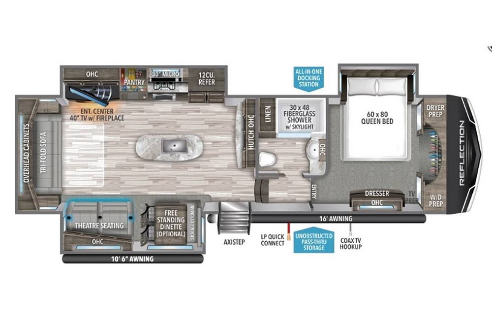 Outside, the Reflection 337RLS continues to impress with its sleek design and high-quality construction. The durable exterior is built to withstand the elements, ensuring your RV remains in top condition for years to come. With its easy-to-use leveling system and spacious storage compartments, setting up camp is a breeze. Don't miss the opportunity to own this exceptional RV that promises to transform your travel adventures into unforgettable memories. Experience the freedom of the open road with the 2022 Grand Design Reflection 337RLS Fifth Wheel.