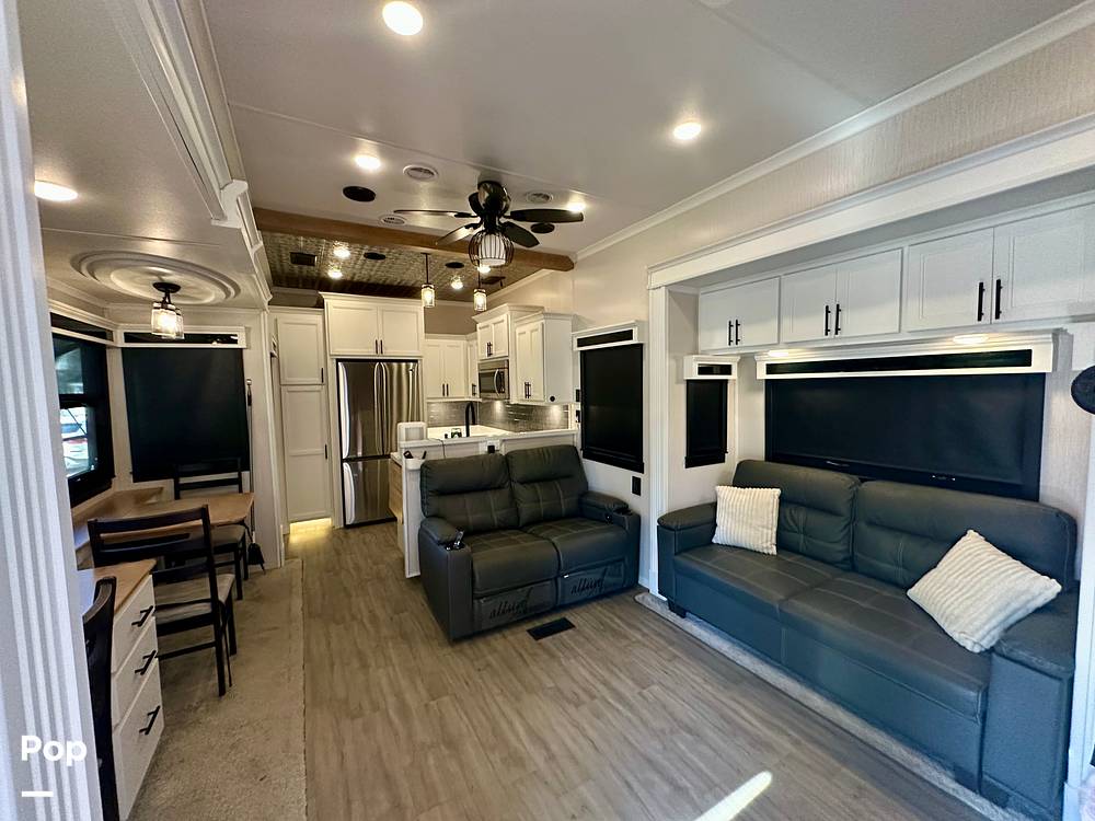 Outside, the Riverstone Reserve Series 3850RK continues to impress with its sleek design and high-quality construction. Whether you're parked at a campsite or exploring off the beaten path, this RV is built to handle it all with ease. With its combination of style, comfort, and functionality, the 2022 Forest River Riverstone Reserve Series 3850RK Fifth Wheel is your ticket to unforgettable travel experiences. Don't miss out on the opportunity to own this exceptional RV and start making memories that will last a lifetime!