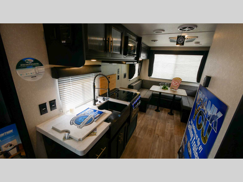Step inside and you'll find a cozy haven that comfortably sleeps up to four people, making it ideal for couples or small families. The interior is thoughtfully designed to maximize space and functionality, ensuring you have everything you need for a comfortable stay. With a length of 21 feet, this travel trailer is easy to tow and maneuver, yet spacious enough to provide a relaxing retreat after a day of exploration. The lightweight design, weighing in at 1,840 kilograms, ensures a smooth towing experience without compromising on stability or safety.