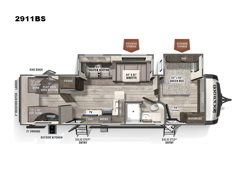 Measuring approximately 29 feet in length, the Rockwood Ultra Lite 2911BS is expertly crafted to balance size and maneuverability. Its lightweight design, weighing just 3,453 kilograms, makes it easy to tow without compromising on durability or stability. The thoughtful layout includes a cozy master bedroom, a convertible dinette, and a comfortable sofa bed, making it ideal for both short getaways and extended trips.