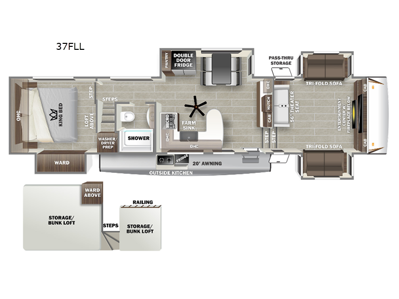 Weighing approximately 5,411 kilograms, the Sabre 37FLL is designed for easy towing while providing a sturdy and reliable travel experience. Inside, you'll find a beautifully appointed interior with modern amenities and plenty of room to relax. The well-equipped kitchen features everything you need to prepare delicious meals on the road, while the cozy living area is perfect for unwinding after a day of adventure. The RV's thoughtful design ensures everyone has their own space, with comfortable sleeping arrangements that include a master bedroom and additional sleeping areas.