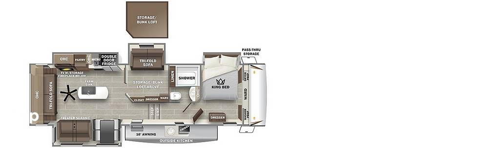 Step inside to find a thoughtfully designed interior that combines style and functionality. The Cherokee Sabre features a cozy living area with plush seating, perfect for unwinding after a day of exploration. The well-equipped kitchen includes modern appliances, ensuring you can prepare delicious meals on the road. The RV also boasts a comfortable sleeping arrangement, with a master bedroom, bunkhouse, and convertible spaces to ensure everyone gets a good night's rest.