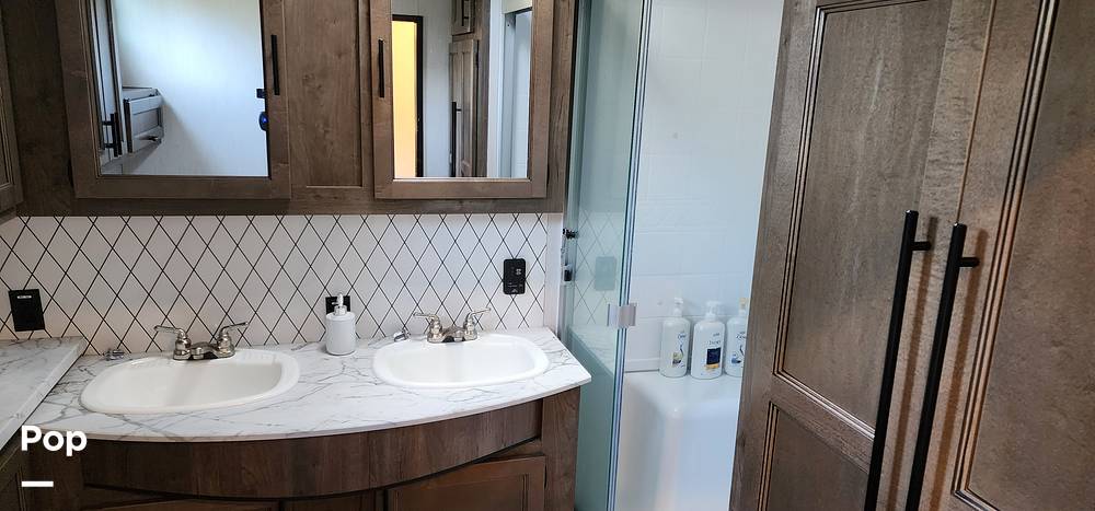 Measuring an impressive 36 feet in length, the Sabre 37FLH is designed to provide all the comforts of home while on the road. Inside, you'll find a beautifully appointed interior with modern amenities and high-quality finishes. The living area is perfect for relaxation, featuring plush seating and a cozy atmosphere. The kitchen is fully equipped with everything you need to prepare delicious meals, including a refrigerator, stove, and microwave. Plus, the spacious dining area is ideal for family meals or game nights.