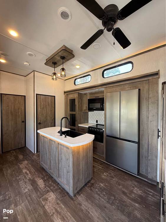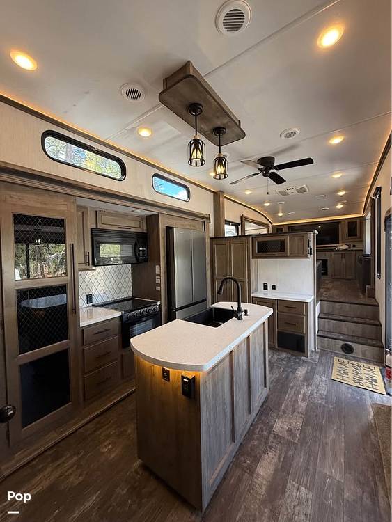 Introducing the 2022 Forest River Sabre 37FLH Fifth Wheel, a pinnacle of luxury and comfort in the world of recreational vehicles. This meticulously crafted RV is designed to elevate your travel experience, offering an unparalleled blend of style, functionality, and space. With a length of 31 feet, the Sabre 37FLH provides ample room for relaxation and entertainment, making it an ideal choice for families or groups seeking adventure without compromising on comfort.