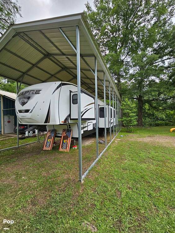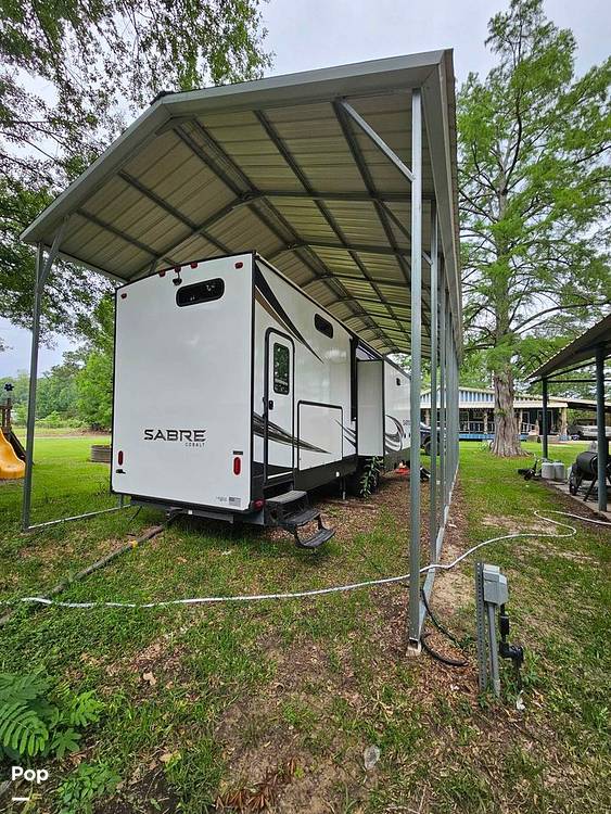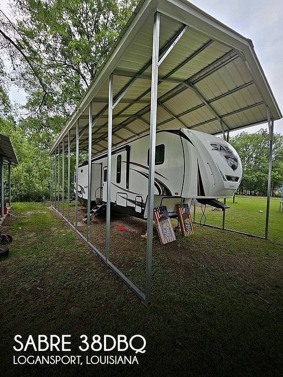 Outside, the Forest River Sabre 38DBQ continues to impress with its durable construction and sleek design. The RV is equipped with essential amenities such as an awning for shade and outdoor enjoyment, as well as ample storage compartments to keep your gear organized and accessible. Whether you're planning a weekend getaway or an extended road trip, this fifth wheel offers the perfect combination of space, comfort, and reliability to make every journey memorable. Don't miss the opportunity to own this exceptional RV and elevate your travel experiences.