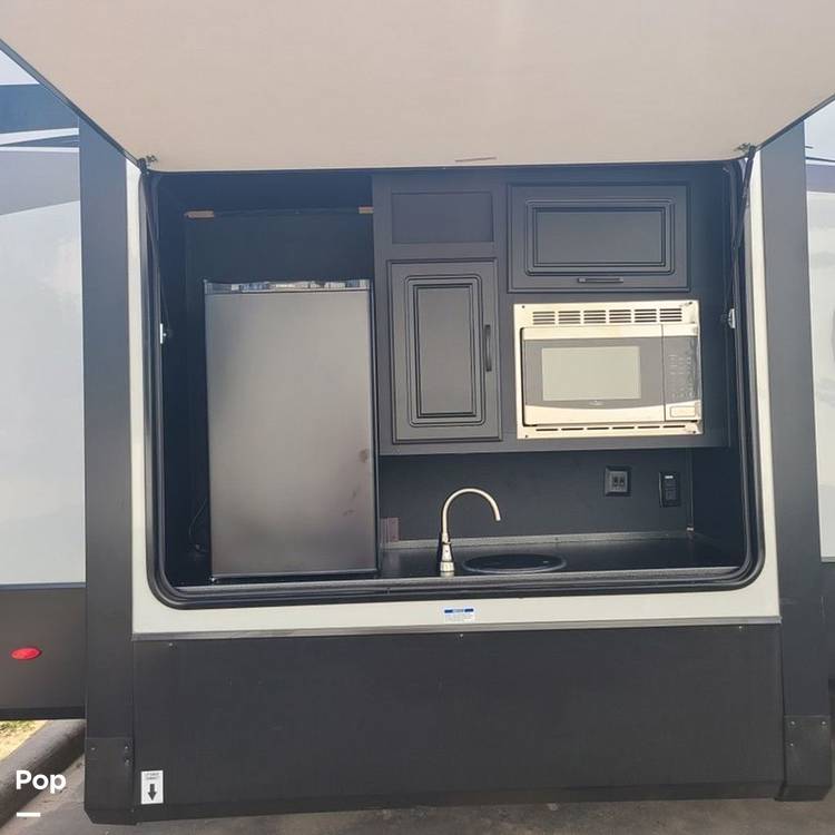 Outside, the Sandpiper 38FKOK continues to impress with its sleek design and practical features. The exterior kitchen is perfect for al fresco dining, and the ample storage compartments ensure you have plenty of space for all your gear. Built with quality and durability in mind, this RV is designed to withstand the rigors of the road while providing a smooth and comfortable ride. Don't miss the opportunity to own this exceptional RV and create unforgettable memories with your loved ones. Experience the freedom of the open road with the 2022 Forest River Sandpiper 38FKOK Fifth Wheel.