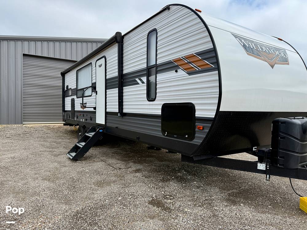 Inside, the Wildwood 27RK is thoughtfully equipped to accommodate up to six people, making it perfect for family trips or outings with friends. The well-appointed kitchen features modern appliances and ample counter space, allowing you to prepare meals with ease. The living area is designed for relaxation, with comfortable seating and a welcoming atmosphere. The sleeping arrangements are versatile, ensuring a restful night's sleep for everyone on board. The master bedroom offers privacy and comfort, while additional sleeping options are available in the common areas.