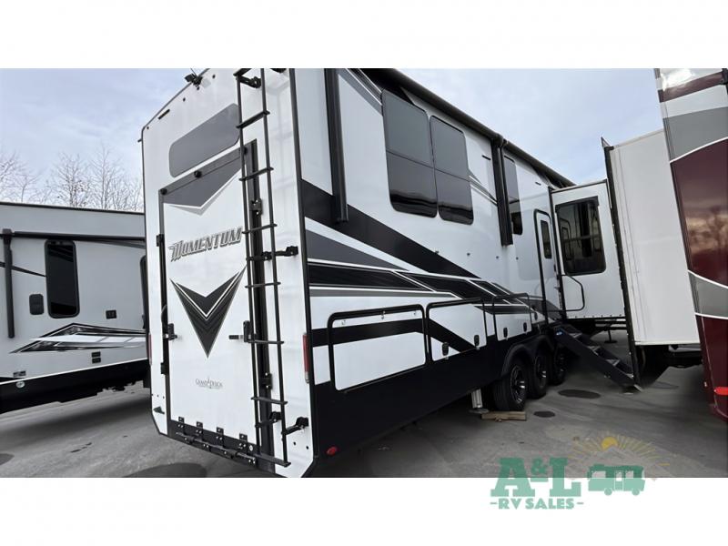 Discover the ultimate in luxury and adventure with the 2022 Grand Design Momentum 376THS Fifth Wheel. This exceptional RV is designed for those who crave the freedom of the open road without sacrificing the comforts of home. With its impressive five slide-outs, this spacious model offers ample room for relaxation and entertainment, making it perfect for families or groups of up to six people. Whether you're embarking on a weekend getaway or an extended road trip, the Momentum 376THS ensures you travel in style and comfort.