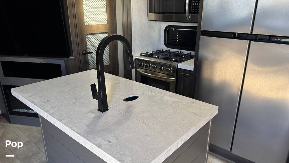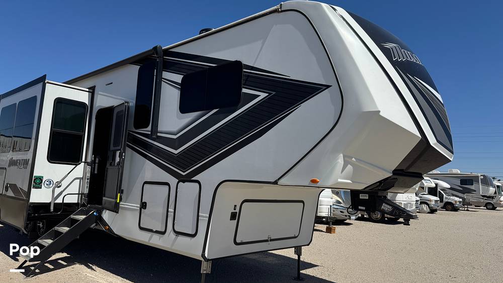 Inside, you'll find a modern and inviting interior with all the amenities you need for a comfortable stay. The well-equipped kitchen, cozy sleeping quarters, and spacious living area make it easy to feel right at home, no matter where your travels take you. So why wait? Embark on your next adventure with the 2022 Grand Design 381 MS Toy Hauler Fifth Wheel and create memories that will last a lifetime!