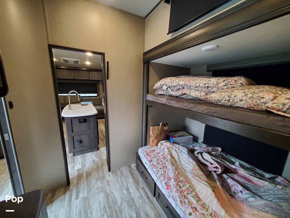 Measuring approximately 29 feet in length, the Reflection 31MB is crafted to deliver both style and functionality. Inside, you'll find a thoughtfully laid-out interior featuring high-quality finishes and modern amenities. The living area is designed for relaxation, with plush seating and ample space for entertaining. The kitchen is equipped with top-of-the-line appliances and plenty of storage, making meal preparation a breeze. The sleeping quarters are equally impressive, offering a restful haven after a day of exploration.