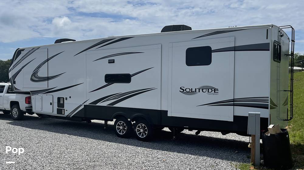 This fifth wheel also boasts a range of practical features, including multiple slide-outs for expanded living space, a spacious bathroom with premium fixtures, and a master bedroom that offers a private sanctuary. The exterior is equally impressive, with durable construction and sleek design, ensuring both style and functionality. Whether you're embarking on a cross-country journey or a weekend getaway, the 2022 Grand Design Solitude 3740 BH Fifth Wheel promises an unparalleled travel experience, combining luxury, comfort, and adventure in one remarkable package.