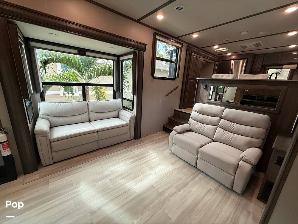Inside, the Solitude 390RKR comfortably accommodates up to six people, making it ideal for family vacations or trips with friends. The interior is thoughtfully designed with high-quality materials and finishes, ensuring a sophisticated and inviting atmosphere. The living area features plush seating and a state-of-the-art entertainment system, providing a perfect space for relaxation and enjoyment. The fully equipped kitchen boasts modern appliances and ample storage, allowing you to prepare meals with ease while on the road.
