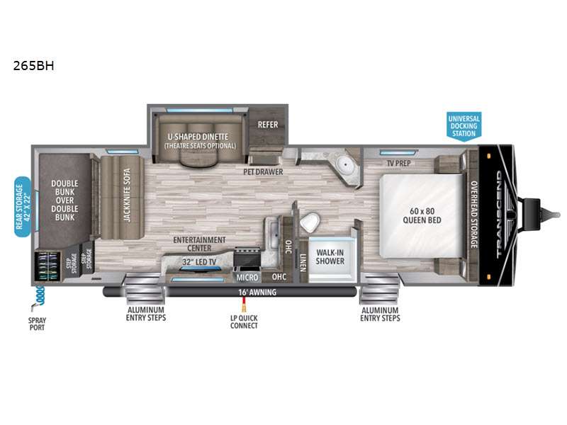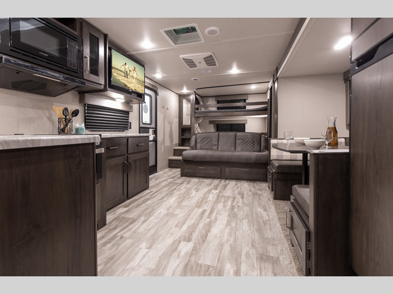 Measuring approximately 27 feet in length, the Transcend Xplor 265BH is thoughtfully crafted to maximize space and functionality. It comfortably sleeps up to 10 people, thanks to its smart layout that includes a cozy bunkhouse, a convertible dinette, and a plush queen-sized bed. Whether you're planning a weekend getaway or an extended road trip, this RV ensures everyone has a comfortable place to rest after a day of adventure.