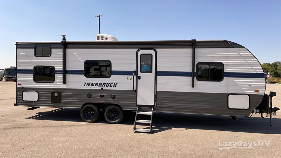 Inside, the Gulf Stream Innsbrook 26BHG boasts a thoughtfully designed interior that maximizes space and comfort. The living area is equipped with plush seating and ample storage, providing a cozy environment for relaxation after a day of exploration. The kitchen features modern appliances, including a refrigerator, stove, and microwave, all designed to make meal preparation a breeze. The sleeping quarters are equally impressive, offering comfortable bedding and privacy, ensuring a restful night's sleep for all occupants. The bathroom is well-appointed with essential amenities, ensuring convenience and comfort on the road.