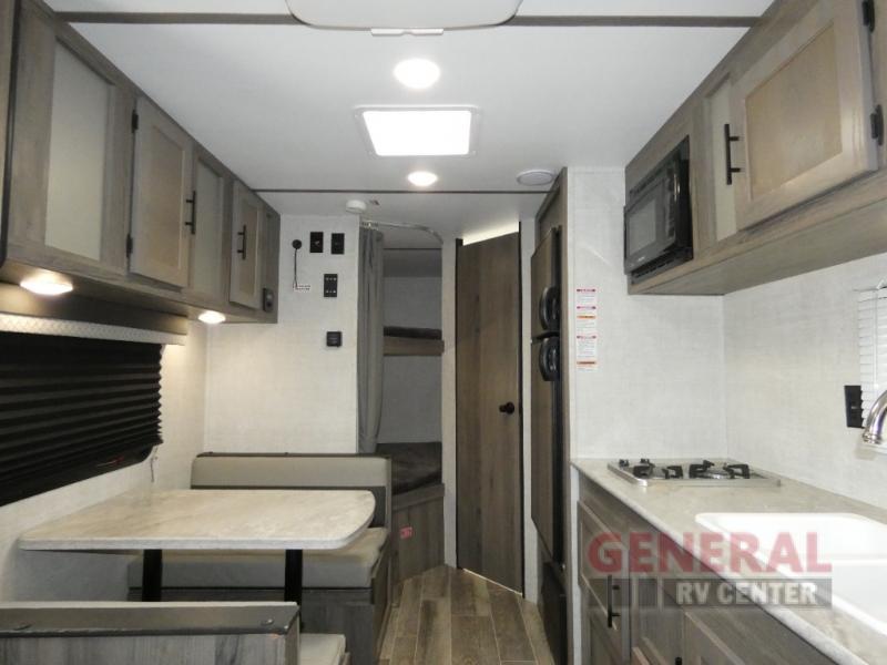 Inside, you'll find cozy sleeping arrangements for up to five people, making it ideal for family getaways or trips with friends. The clever layout maximizes space and comfort, ensuring everyone has a spot to relax after a day of exploring. The interior is thoughtfully designed with modern amenities, so you can enjoy the great outdoors without sacrificing the comforts of home. Whether you're cooking up a meal in the kitchen or unwinding in the living area, this RV has got you covered.