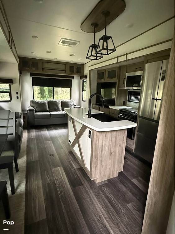 Looking for the perfect home on wheels for your next adventure? Check out this 2022 Heartland ElkRidge ER 38MB Fifth Wheel! This beauty is a real head-turner with its sleek design and spacious interior. Measuring a generous 35 feet in length, it’s perfect for family trips or a getaway with friends. With the ability to comfortably sleep up to 8 people, you’ll have plenty of room for everyone to join in on the fun.