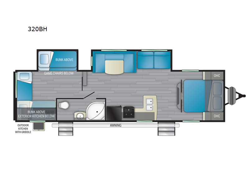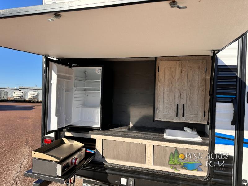 Step inside and be greeted by the expansive interior, thanks to the two slide-outs that create a roomy and inviting atmosphere. The Prowler 320BH can comfortably sleep up to nine people, making it perfect for family vacations or trips with friends. The dedicated bunk room is a hit with kids and offers privacy and comfort for everyone. The main living area is designed with relaxation in mind, featuring a cozy seating area and a fully equipped kitchen, perfect for whipping up your favorite meals on the go.