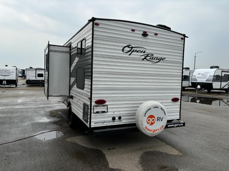 Discover the perfect blend of comfort and adventure with the 2022 Highland Ridge RV Open Range Conventional 180BHS Travel Trailer. With an odometer reading of just 2 kilometers, this nearly-new travel trailer is ready to take you on countless journeys. Designed for families and groups, it comfortably sleeps up to five people, making it an ideal choice for both weekend getaways and extended vacations.