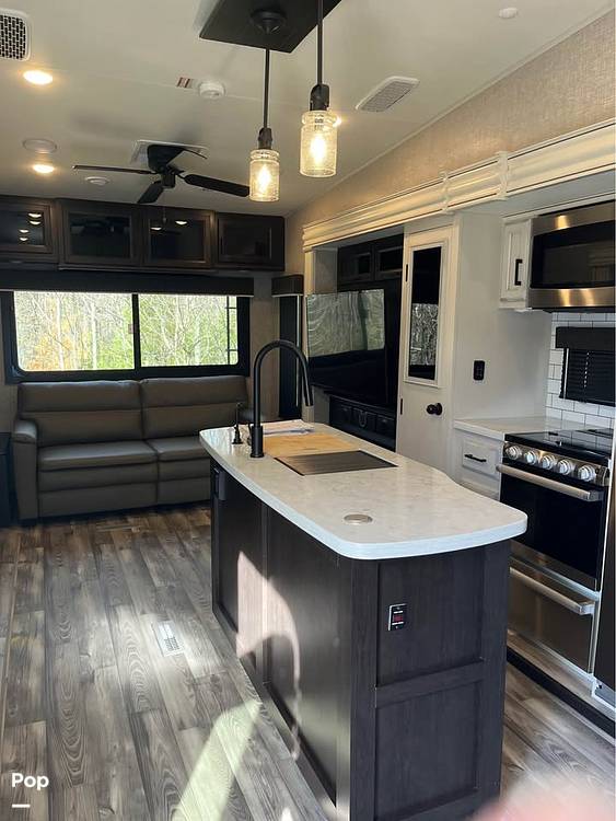 Outside, the Jayco Eagle 321 RSTS continues to impress with its sleek design and durable construction. The large awning creates a perfect outdoor living space, ideal for enjoying the great outdoors in comfort. With its advanced suspension system and easy towing capabilities, this fifth wheel ensures a smooth ride on any terrain. Whether you're embarking on a cross-country journey or a weekend getaway, the 2022 Jayco Eagle 321 RSTS Fifth Wheel is your ticket to unforgettable adventures. Don't miss the opportunity to own this exceptional RV and elevate your travel experiences to new heights.