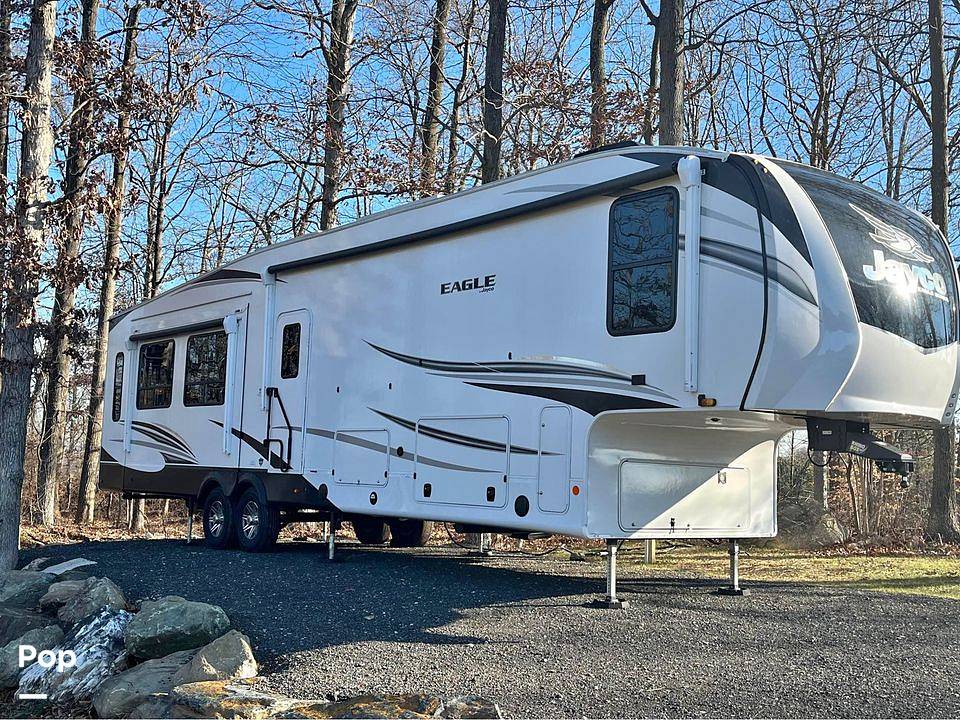 Discover the ultimate in luxury and comfort with the 2022 Jayco Eagle 355MBQS Fifth Wheel, a perfect blend of style and functionality for your next adventure. This spacious RV, measuring 35 feet in length, is designed to accommodate up to 11 people, making it ideal for family trips or group outings. With its sleek design and high-quality construction, the Jayco Eagle ensures a smooth and enjoyable travel experience.