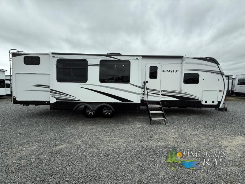 Weighing approximately 4,313 kilograms, this travel trailer is engineered for stability and ease of towing. Its robust construction and advanced suspension system ensure a smooth journey, regardless of the terrain. The Jayco Eagle HT 312BHOK also features an outdoor kitchen, perfect for al fresco dining and entertaining under the stars. Whether you are embarking on a weekend getaway or an extended road trip, this travel trailer promises to deliver an unparalleled experience in comfort and style. Embrace the freedom of the open road with the 2022 Jayco Eagle HT 312BHOK, where every journey becomes a cherished memory.