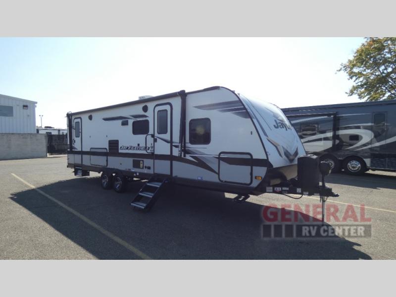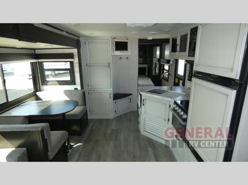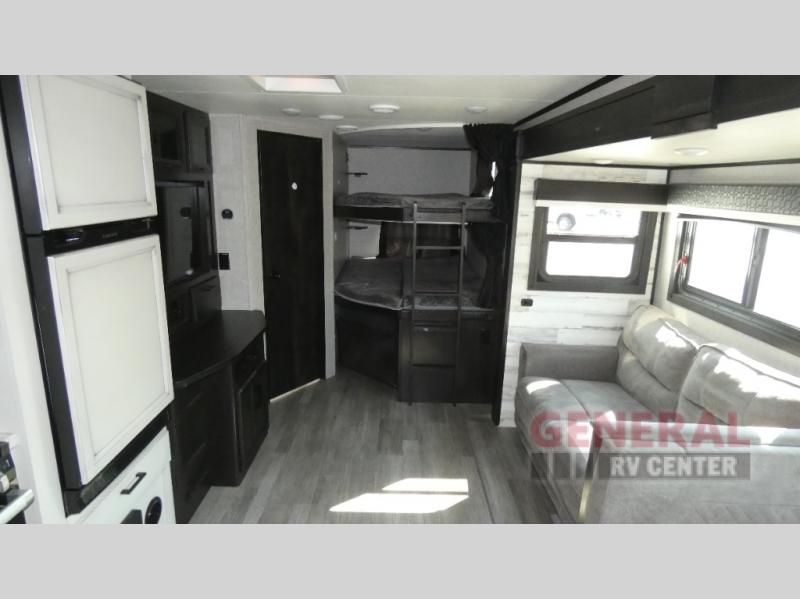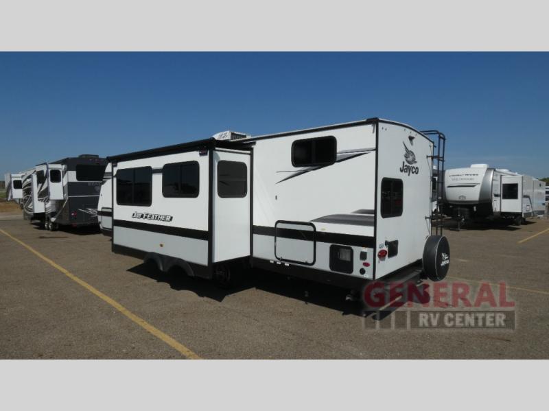 The Jay Feather 27BHB is designed to accommodate up to eight people, making it ideal for family vacations or group getaways. The intelligently designed floor plan includes one slide-out, which significantly enhances the living space, providing a roomy and inviting atmosphere. The interior is thoughtfully equipped with high-quality furnishings and fixtures, ensuring a cozy and convenient living experience. The sleeping arrangements are versatile, with a master bedroom, bunk beds, and convertible seating areas, ensuring everyone has a comfortable place to rest.