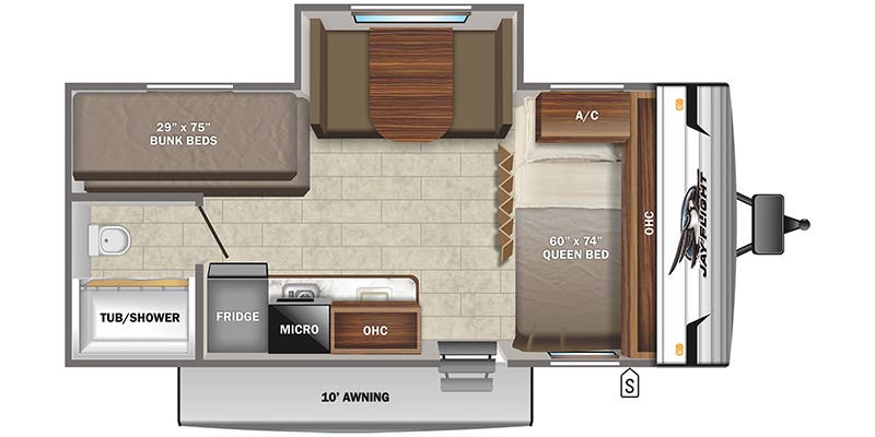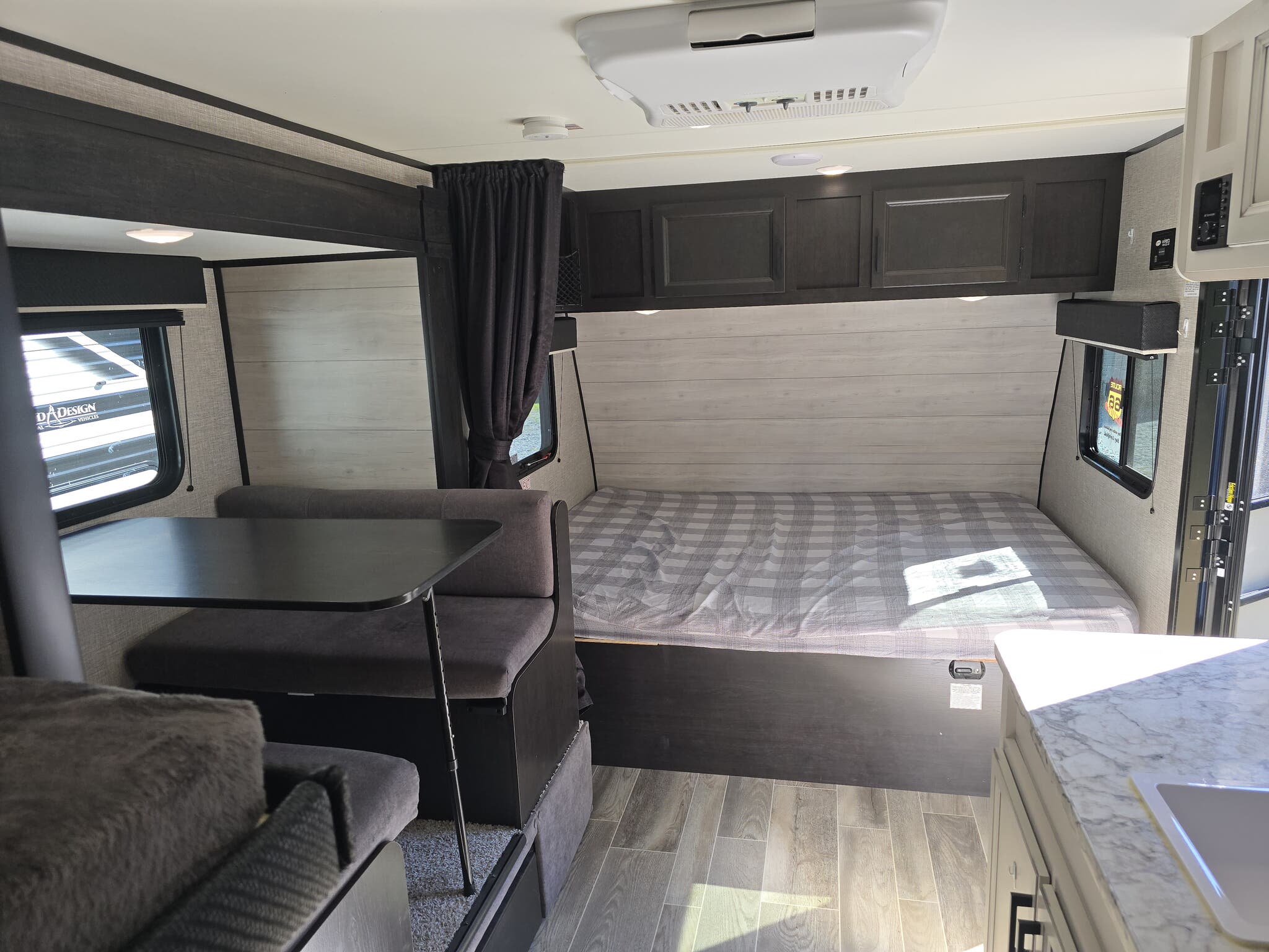 The Jay Flight SLX 7 184BS features a single slide-out, enhancing the living area to provide ample space for relaxation and entertainment. It is ingeniously designed to accommodate up to eight people, making it an ideal choice for family vacations or group outings. The interior is thoughtfully laid out with sleeping arrangements that include a cozy queen bed, convertible dinette, and bunk beds, ensuring everyone has a comfortable place to rest after a day of exploration.