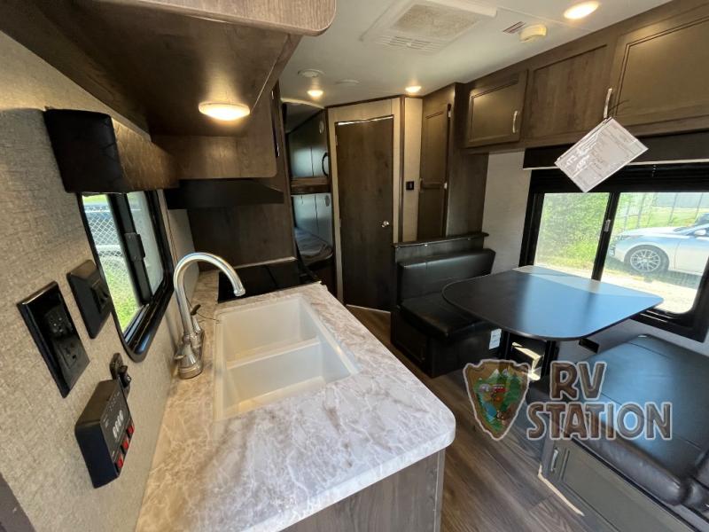 But that's not all! This travel trailer is packed with features to make your journey as comfortable as possible. Enjoy the convenience of a full bathroom, complete with a shower and toilet, so you can freshen up wherever you are. The Jayco Jay Flight SLX 8 is designed for adventure and relaxation, offering you the best of both worlds. So why wait? Hit the road and start making memories with this fantastic RV!