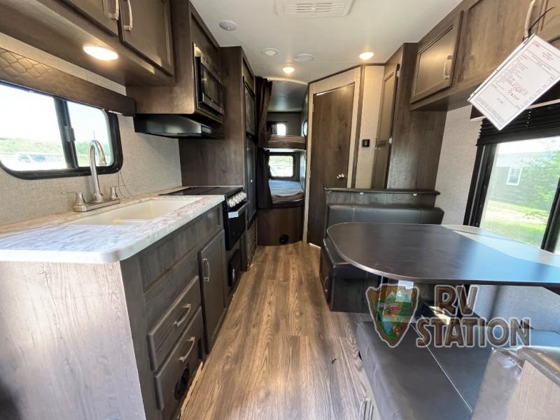 Measuring about 23 feet in length, the Jay Flight SLX 8 is compact enough to easily tow yet spacious enough to provide all the comforts of home. Weighing in at around 2,011 kilograms, it's a breeze to handle on the road. Inside, you'll find a smart layout that maximizes space and functionality. The bunk beds are perfect for the kids, while the convertible dinette and sofa offer additional sleeping options. Plus, the kitchen is fully equipped with everything you need to whip up a meal after a day of exploring.