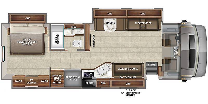 The interior of the Jayco Seneca Prestige 37M is meticulously crafted with high-quality materials and thoughtful design elements. The living area is equipped with plush seating and a state-of-the-art entertainment system, ensuring relaxation and enjoyment on the road. The fully-equipped kitchen features modern appliances, ample counter space, and abundant storage, making meal preparation a breeze. The sleeping quarters include a luxurious master suite and additional sleeping options, providing restful accommodations for all occupants.
