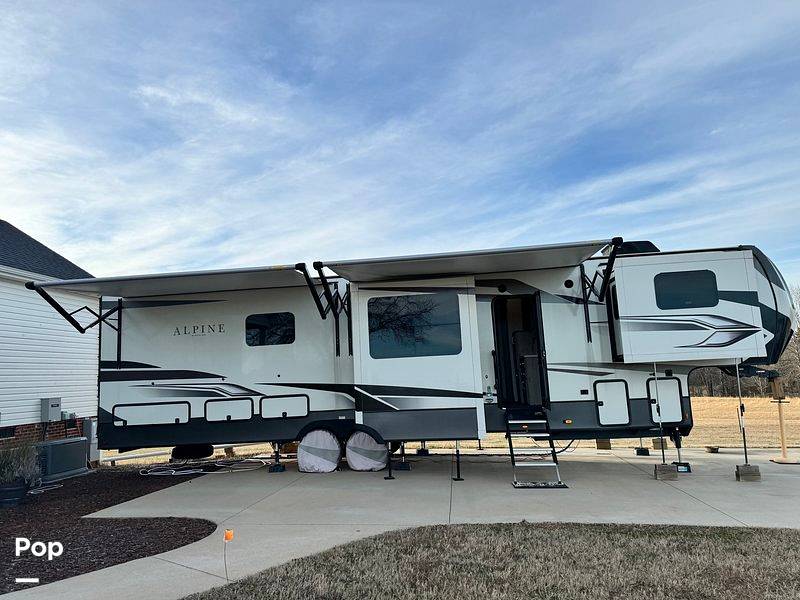 Discover the ultimate in comfort and adventure with the 2022 Keystone Alpine 3712KB Fifth Wheel! This luxurious RV is perfect for families or groups of friends looking to explore the great outdoors without sacrificing the comforts of home. With its spacious design, it comfortably sleeps up to six people, making it ideal for memorable getaways with loved ones.