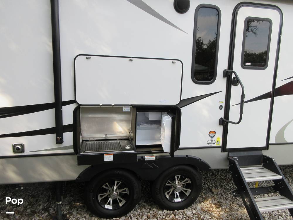 Inside, the Keystone Cougar 30RKD is thoughtfully designed to accommodate up to four people comfortably. The well-appointed living area features plush seating and a modern entertainment system, creating a cozy environment for relaxation after a day of exploration. The kitchen is equipped with high-quality appliances and ample storage, allowing you to prepare meals with ease. The dining area is both functional and stylish, providing a perfect setting for family meals or entertaining guests.