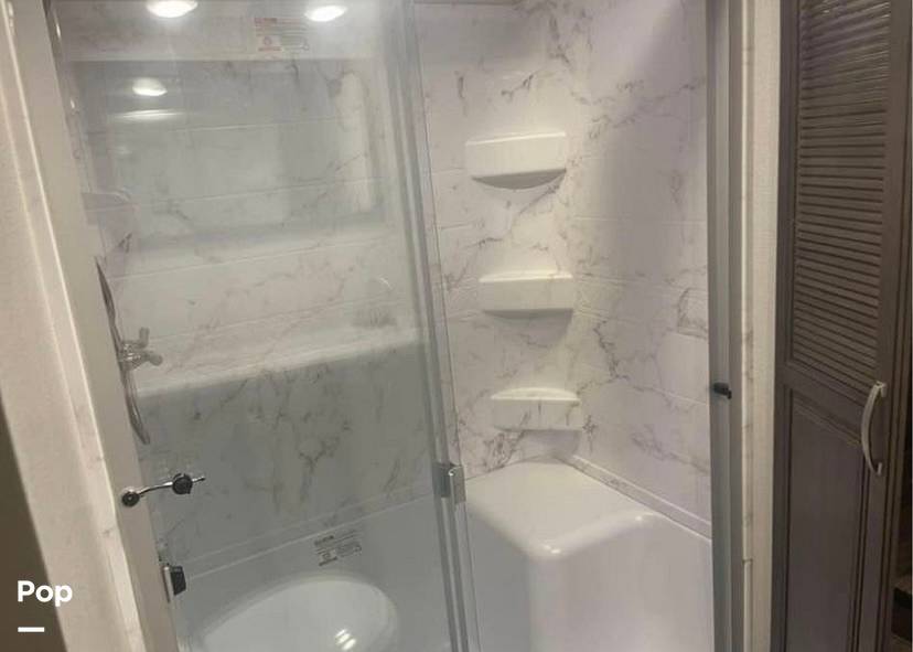 Step inside, and you'll find a well-thought-out interior that blends style with functionality. The living area is perfect for relaxing after a day of exploring, featuring plush seating and a modern entertainment system. The kitchen is equipped with everything you need to whip up delicious meals on the go, including a full-sized refrigerator, stove, and plenty of storage space. The master bedroom offers a peaceful retreat with a comfortable bed and ample closet space, while the additional sleeping areas ensure everyone has a cozy spot to rest.