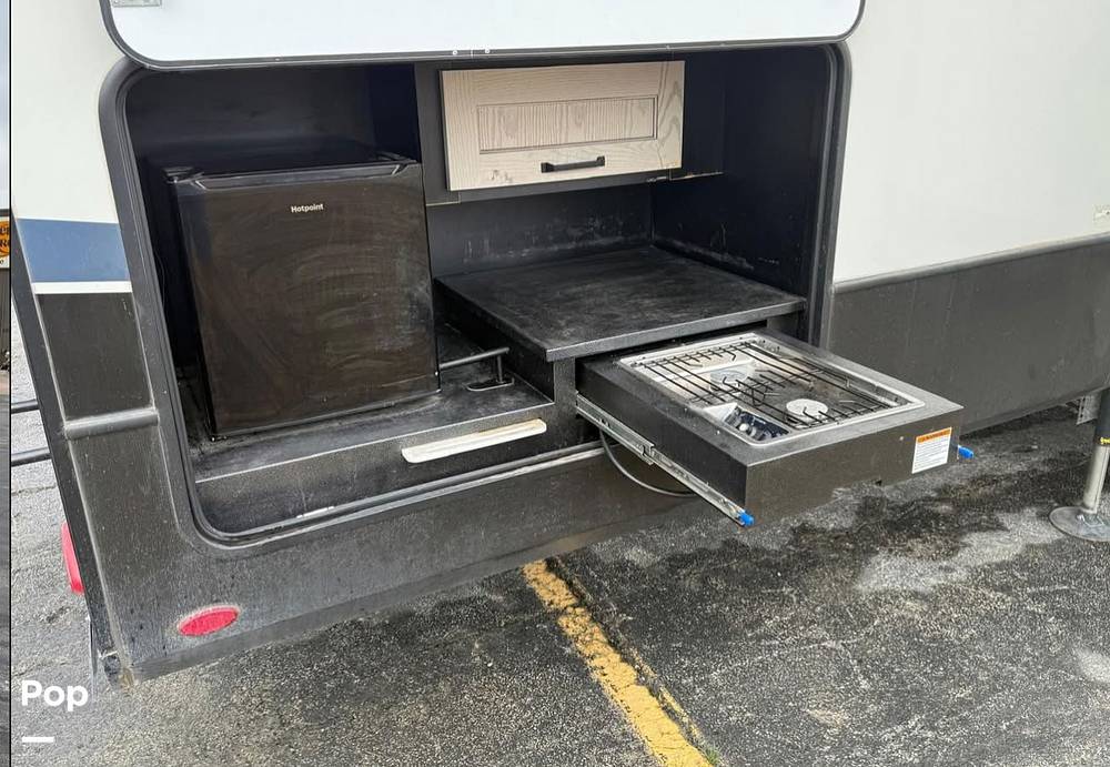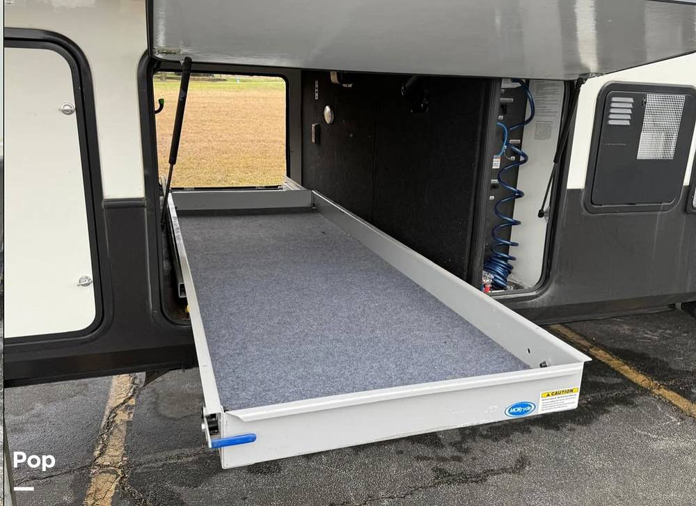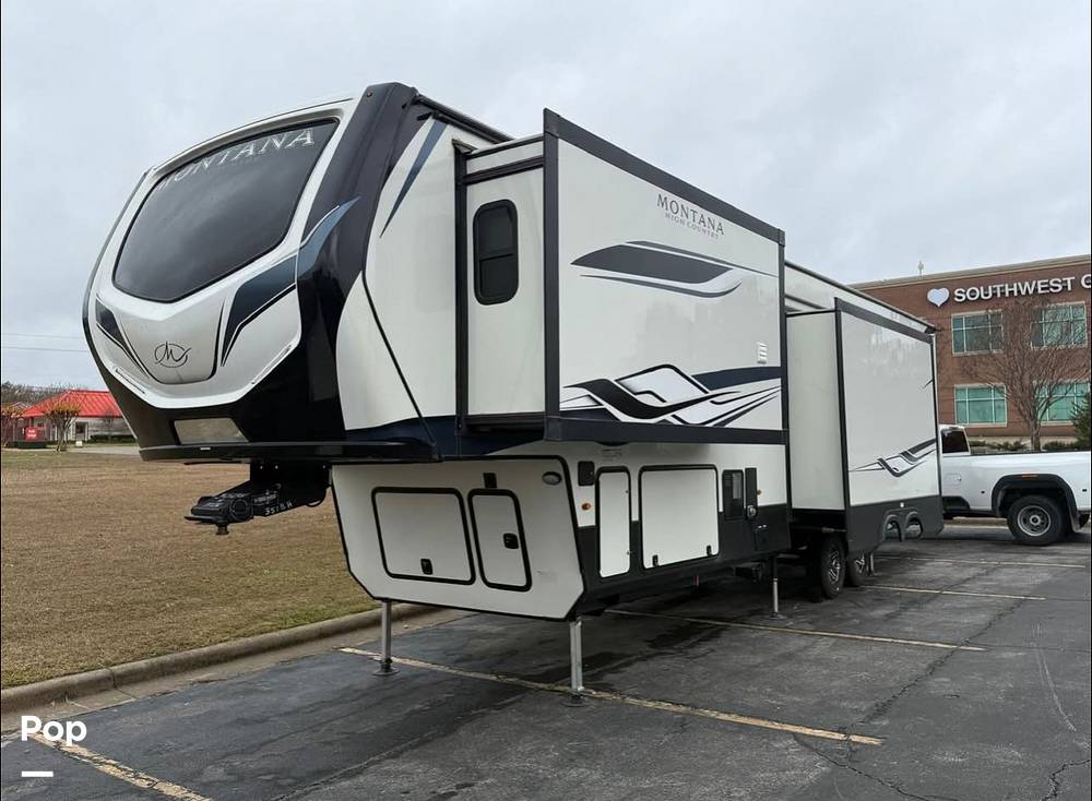 Step inside to find a thoughtfully designed interior that combines elegance with practicality. The Montana 351BH features a well-appointed kitchen equipped with modern appliances, including a refrigerator, microwave, and stove, allowing you to prepare meals with ease. The living area is designed for relaxation, featuring comfortable seating and a state-of-the-art entertainment system. The RV also boasts a master bedroom with a plush queen-sized bed, along with additional sleeping areas that include bunk beds and convertible furniture, ensuring everyone has a cozy place to rest.