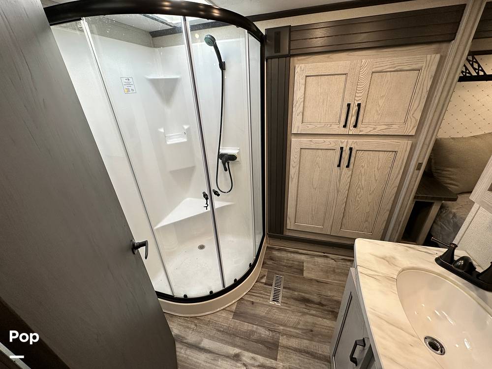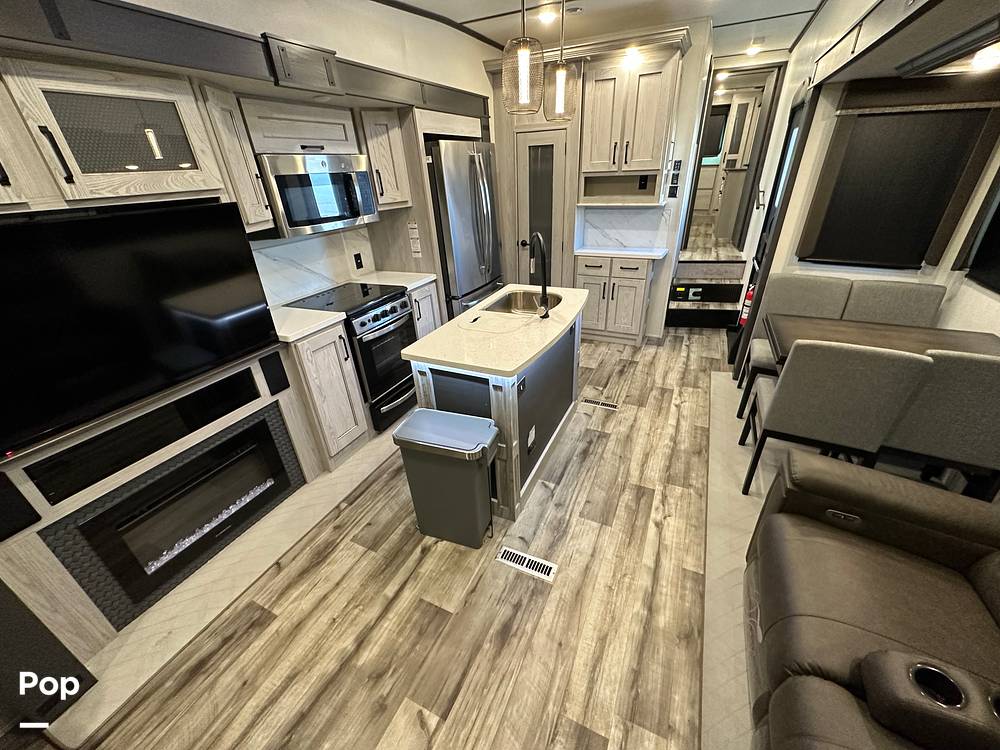 Step inside and be captivated by the spacious and elegantly appointed interior. The Montana High Country 295RL boasts a meticulously crafted living area, complete with plush seating and a state-of-the-art entertainment system, ensuring relaxation after a day of exploration. The kitchen is a chef's dream, featuring high-end appliances, ample counter space, and abundant storage, making meal preparation a breeze. The luxurious master bedroom offers a tranquil retreat with a comfortable queen-sized bed, while the convertible sofa provides additional sleeping space for guests.
