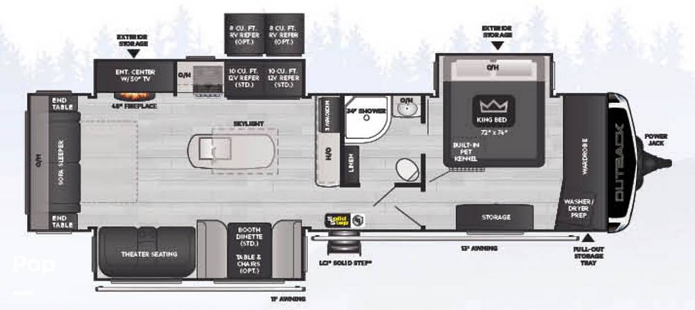 Outside, the Keystone Outback 328RL continues to impress with its sleek design and durable construction. The exterior features an awning for shaded relaxation and ample storage compartments for all your gear. Whether you're parked at a scenic campsite or exploring off the beaten path, this travel trailer is your ticket to unforgettable adventures. Don't miss the opportunity to own this incredible RV and create lasting memories with your loved ones. Adventure awaits with the 2022 Keystone Outback 328RL Travel Trailer!