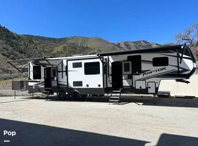 Introducing the 2022 Keystone Raptor 413 Fifth Wheel, a premier choice for those seeking luxury and adventure on the open road. This exceptional RV is designed to accommodate up to seven guests comfortably, making it an ideal option for families or groups of friends eager to explore the great outdoors without sacrificing the comforts of home. With its sleek design and robust features, the Keystone Raptor 413 is a testament to superior craftsmanship and thoughtful engineering.