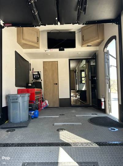 Measuring an impressive 36 feet in length, this fifth wheel offers ample space for relaxation and entertainment. The interior is meticulously crafted, featuring high-quality materials and modern amenities that ensure a comfortable and enjoyable experience. The spacious living area is perfect for socializing, while the well-appointed kitchen provides all the necessary appliances for preparing delicious meals on the go. The sleeping quarters are designed to offer restful nights, with plush bedding and ample storage space for personal belongings.