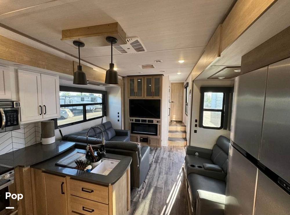 Introducing the 2022 Keystone Raptor 413 Fifth Wheel, an epitome of luxury and functionality designed to elevate your travel experiences. This remarkable RV, with a length of 36 feet, offers an unparalleled blend of comfort and versatility, making it an ideal choice for families and adventurers alike. With the capacity to sleep up to seven individuals, it ensures ample space for everyone to relax and unwind after a day of exploration.