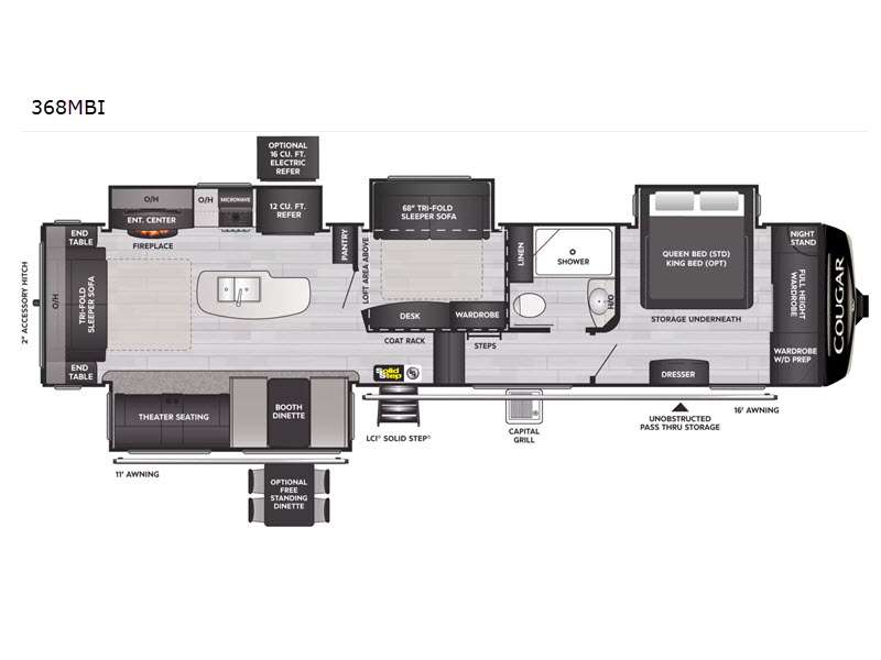 But that's not all! The Cougar 368MBI is packed with features to enhance your travel experience. Enjoy the convenience of modern appliances, a spacious bathroom, and a cozy entertainment area perfect for movie nights or rainy days. With its sleek exterior and durable construction, this RV is built to withstand the elements while providing a comfortable and stylish retreat. Don't miss out on the opportunity to own this fantastic RV and start making memories on the open road today!