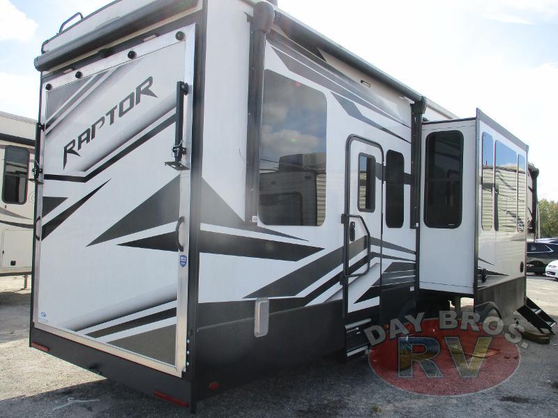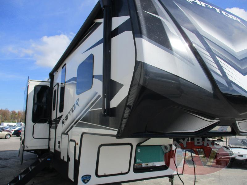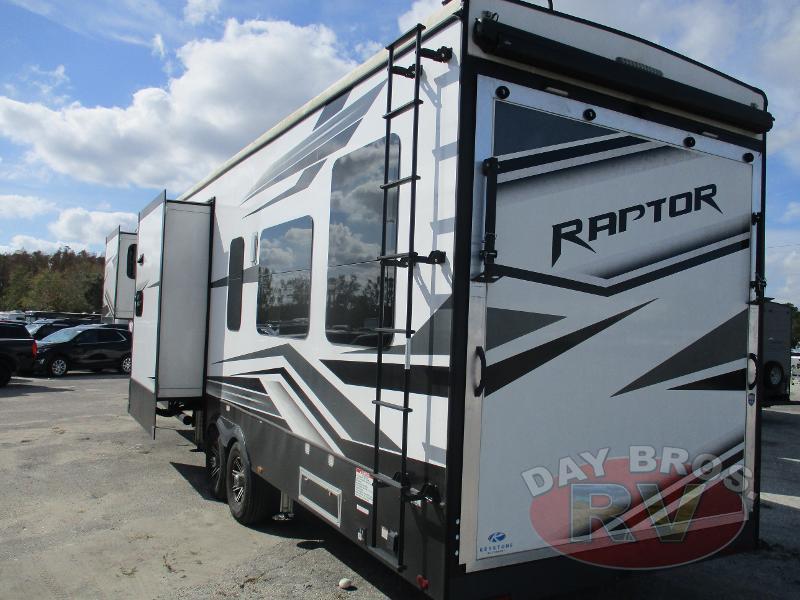 Introducing the 2022 Keystone RV Raptor 352 Fifth Wheel, a pinnacle of luxury and functionality designed for the discerning traveler. This remarkable RV boasts three spacious slide-outs, providing ample room for relaxation and entertainment. With a length of approximately 33 feet, the Raptor 352 is expertly crafted to offer both comfort and convenience, making it an ideal choice for families or groups seeking adventure without compromising on luxury.