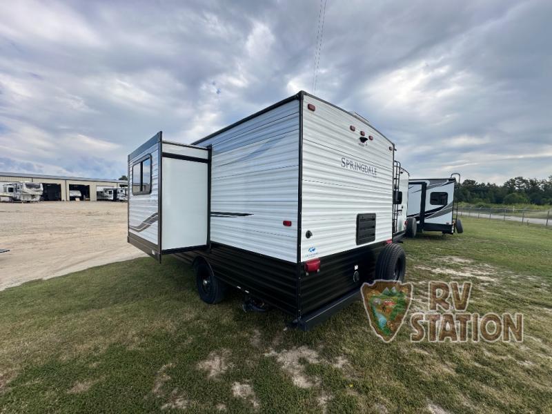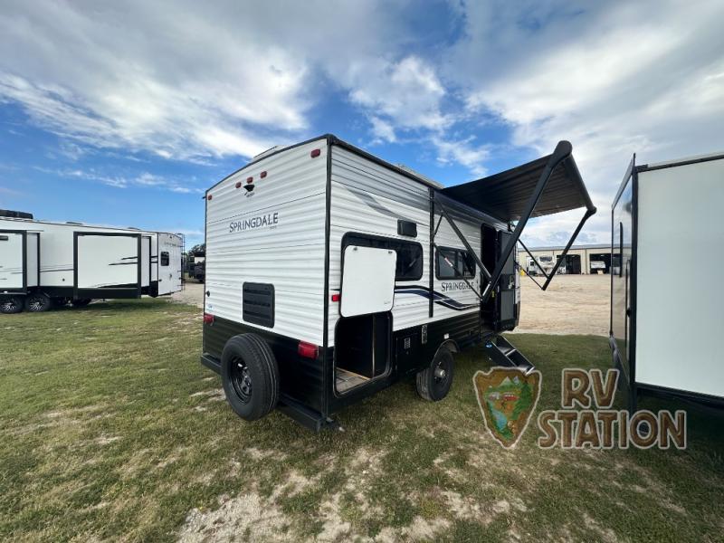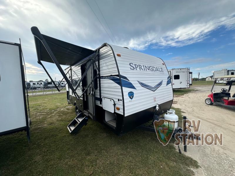 The Springdale 1740RK is designed with practicality in mind, featuring ample storage solutions throughout, including overhead cabinets and under-bed storage. The bathroom is compact yet efficient, with a shower, toilet, and sink, ensuring all your needs are met without compromise. Built with Keystone's renowned quality and durability, this travel trailer promises reliability and comfort, making it a wise investment for those seeking a versatile and dependable travel companion. Whether you're embarking on a cross-country journey or a weekend getaway, the 2022 Keystone RV Springdale 1740RK is ready to accompany you on every adventure.