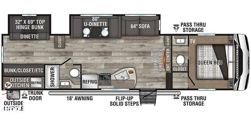 Outside, the RV boasts a sleek and durable design, ready to tackle any road trip you have in mind. The exterior storage compartments provide plenty of room for all your gear, while the awning creates a perfect outdoor living space for enjoying the fresh air. Whether you're planning a weekend getaway or an extended journey, the 2022 KZ Sportsmen 302 BHK Fifth Wheel is your ticket to a world of adventure and cherished memories. Don't miss the chance to make this incredible RV your own and start your journey today!