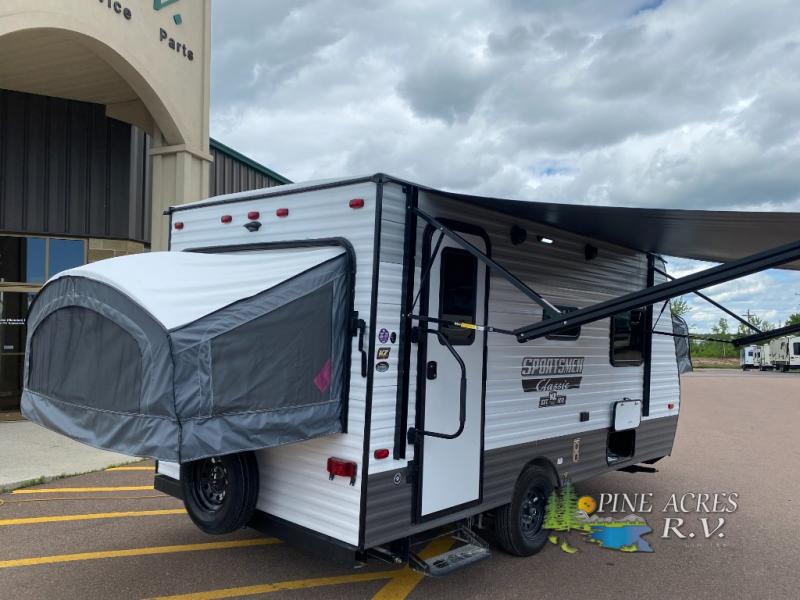 Inside, the Sportsmen Classic 160RBT comfortably accommodates up to six people, making it perfect for family getaways or group excursions. The intelligently designed layout maximizes space, offering a cozy sleeping arrangement without compromising on comfort. The hybrid design features expandable sleeping areas, providing the flexibility to enjoy the great outdoors while maintaining the comforts of home. The interior is thoughtfully appointed with modern amenities, ensuring a pleasant and convenient camping experience.