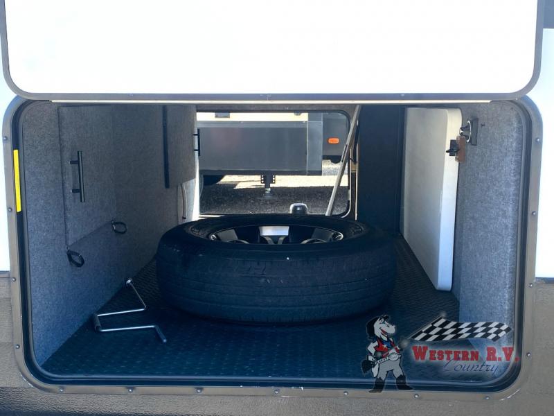 Step inside to find a spacious and inviting interior that feels just like home. The F28RKS features a well-appointed kitchen with modern appliances, including a large refrigerator and a three-burner stove, perfect for whipping up delicious meals on the go. The cozy living area boasts plush seating and a large flat-screen TV, making it the ideal spot to relax after a day of adventure. The master bedroom offers a comfortable queen-sized bed, ample storage, and an en-suite bathroom with a roomy shower, ensuring you have all the comforts of home wherever you roam.