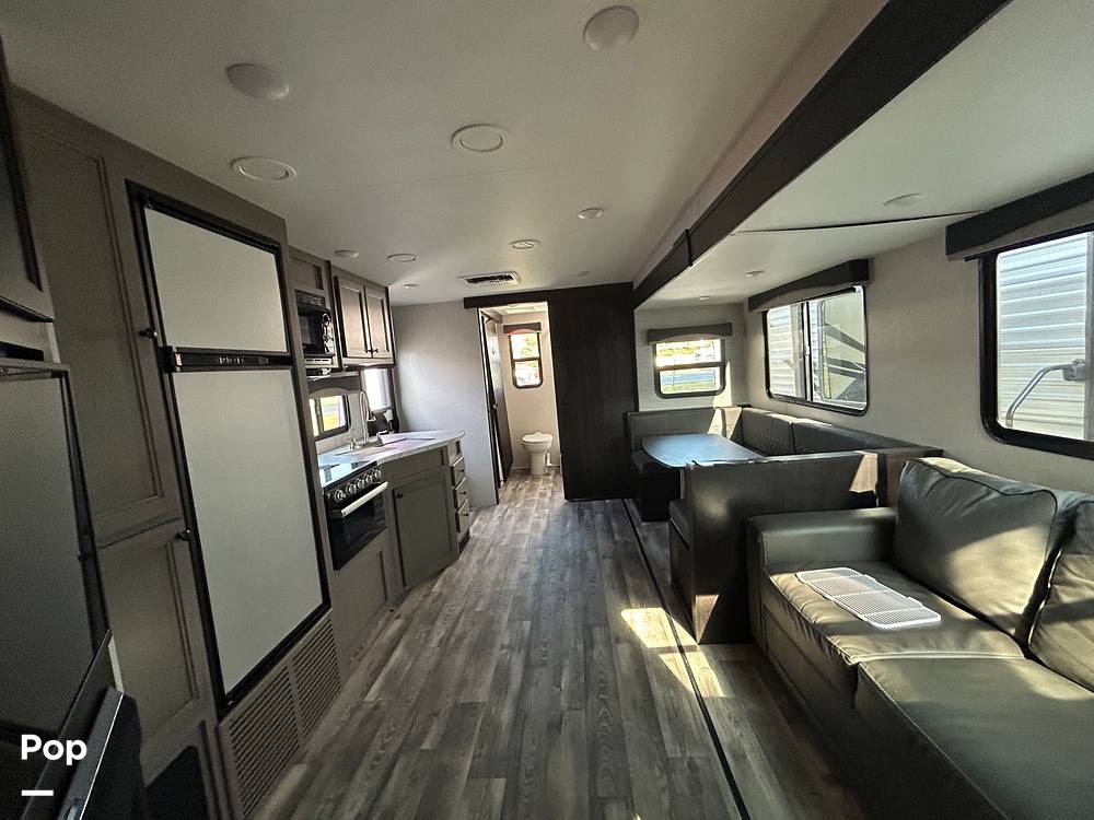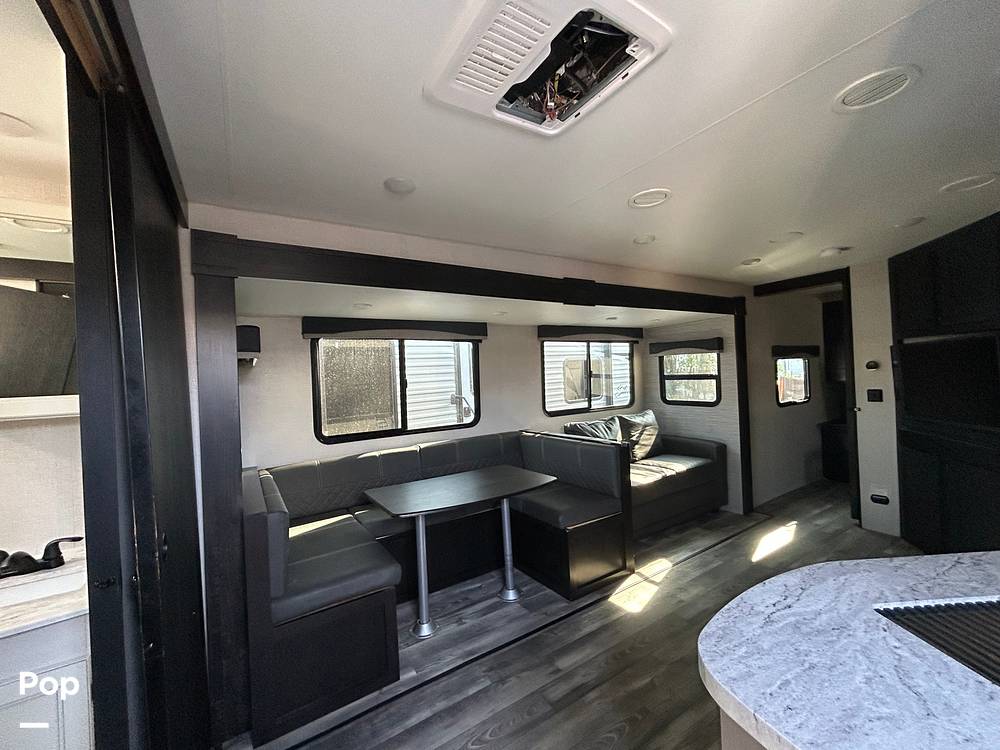 Inside, you’ll find a well-designed layout that maximizes space and comfort. The living area is perfect for lounging after a day of exploring, and the kitchen is equipped with everything you need to whip up your favorite meals on the road. The bathroom is roomy, offering a touch of luxury with its modern fixtures. Plus, with plenty of storage throughout, you can bring along all your essentials without feeling cramped.