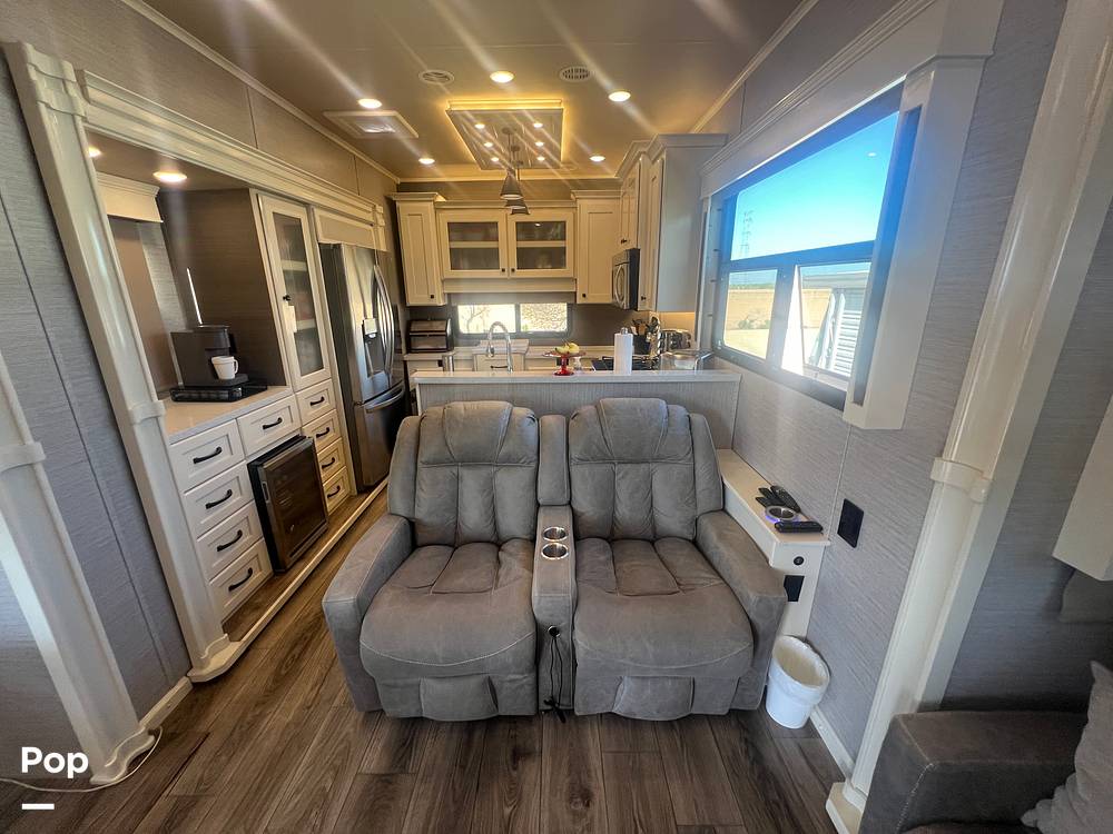 Step inside and be greeted by a meticulously crafted interior that sleeps up to four people comfortably. The spacious living area is adorned with premium furnishings, including plush seating and a state-of-the-art entertainment system, ensuring every journey is as enjoyable as the destination. The well-appointed kitchen features top-of-the-line appliances, abundant storage, and elegant countertops, making meal preparation a breeze whether you're parked in a scenic campground or a bustling RV park.