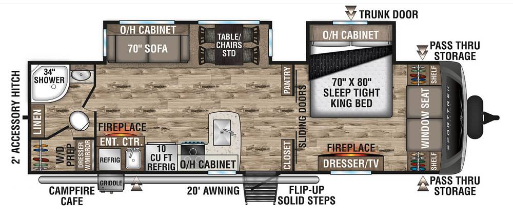 Built with quality and durability in mind, the SportTrek Touring 302VRB features a robust construction and sleek exterior design. Its lightweight build ensures easy towing, while the advanced suspension system provides a smooth ride. Whether you're exploring the countryside or setting up camp at your favorite spot, this travel trailer is equipped to handle it all. Experience the freedom of the open road with the 2022 Venture RV SportTrek Touring 302VRB, where every journey becomes an unforgettable adventure.