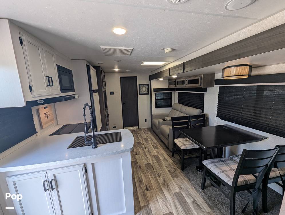 Discover the ultimate in travel comfort with the 2022 Venture RV SportTrek Touring 302VRB Travel Trailer. This meticulously designed RV is perfect for those who crave adventure without sacrificing the comforts of home. With a length of 28 feet, this travel trailer offers a spacious and well-thought-out interior that can comfortably sleep up to four people, making it ideal for couples or small families seeking memorable road trips.