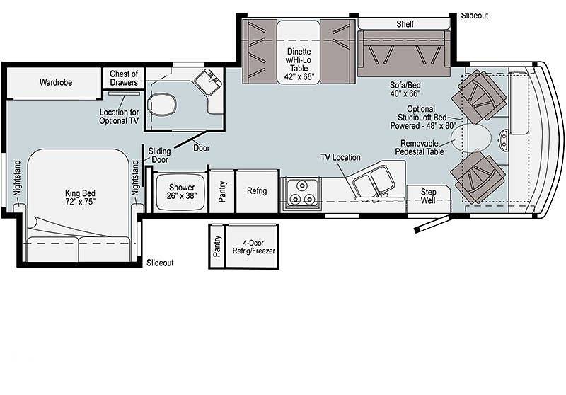 Fuel efficiency meets power with the Vista's impressive fuel capacity of 303 liters, ensuring you can explore further without frequent stops. Its robust engine and smooth handling make driving a breeze, whether you're navigating city streets or cruising along scenic highways. At 26 feet in length, this RV strikes the perfect balance between spaciousness and maneuverability, allowing you to access a wide range of destinations with ease. The Vista's sleek exterior and modern design will turn heads wherever you go, while its durable construction promises reliability on every adventure.